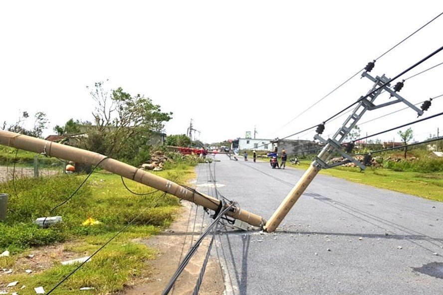 | Phần lưới hạ thế có 1078 cột điện gãy đổ; 1.686 cột bị nghiêng, sạt lở móng; 61,04 km đường dây bị phá hủy. |