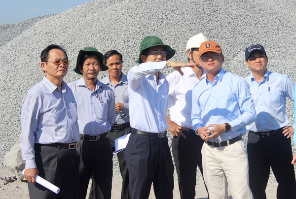 | Phó chủ tịch UBND tỉnh Võ Văn Chánh (giữa) đi kiểm tra các mỏ khai thác đá tại xã Thiện Tân (huyện Vĩnh Cửu). Ảnh: K.Minh |