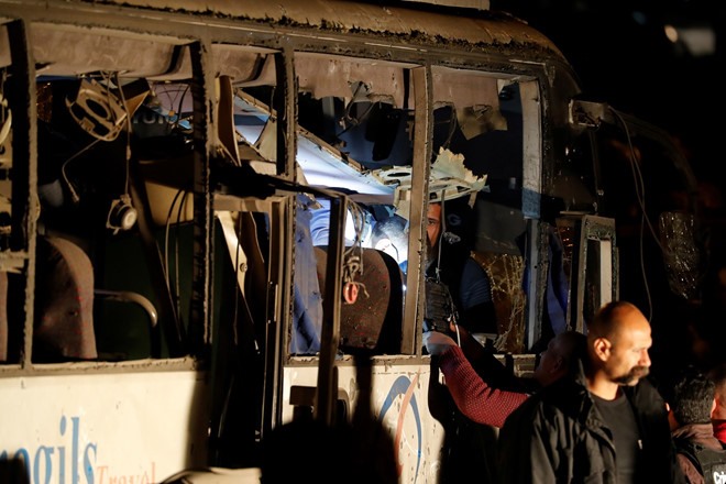 | Hiện trường vụ đánh bom xe buýt khiến du khách Việt Nam bị thương vong. Ảnh: REUTERS/Amr Abdallah Dalsh |