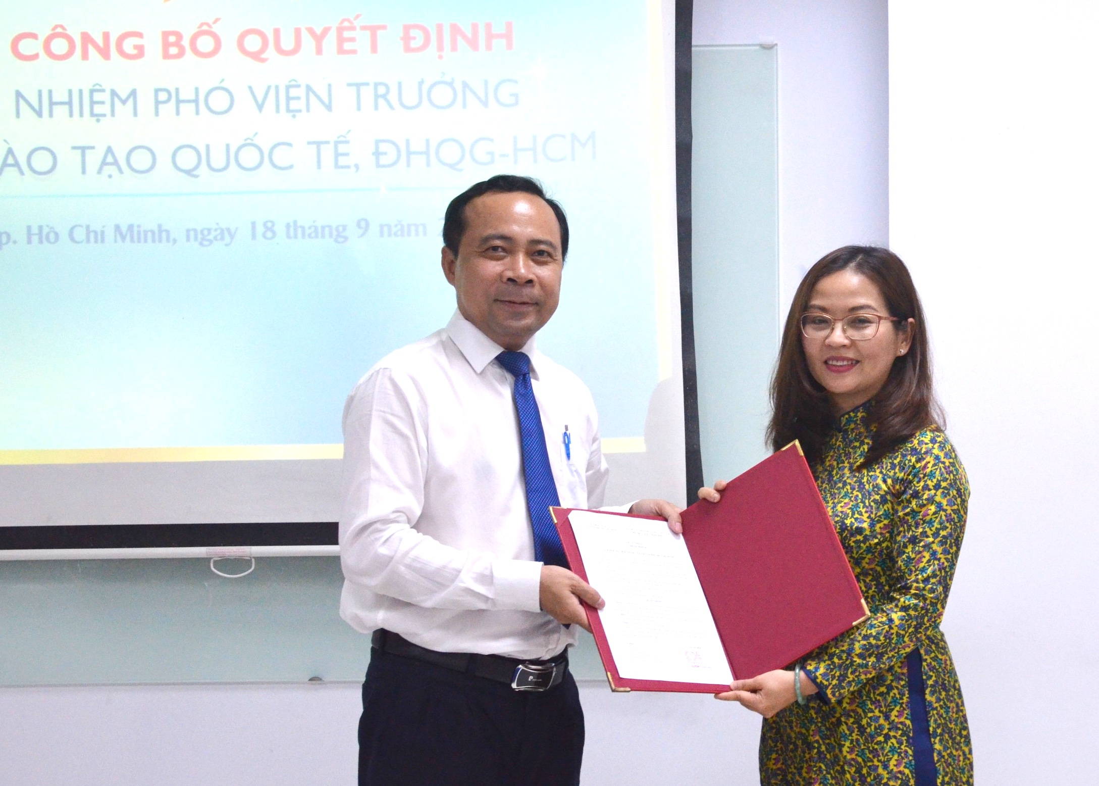 TS Bùi Thị Hồng Hạnh nhận quyết định bổ nhiệm phó viện trưởng Viện Đào tạo quốc tế - Đại học Quốc gia TP.HCM ngày 9-2-2019 - Ảnh: VNUILEAD