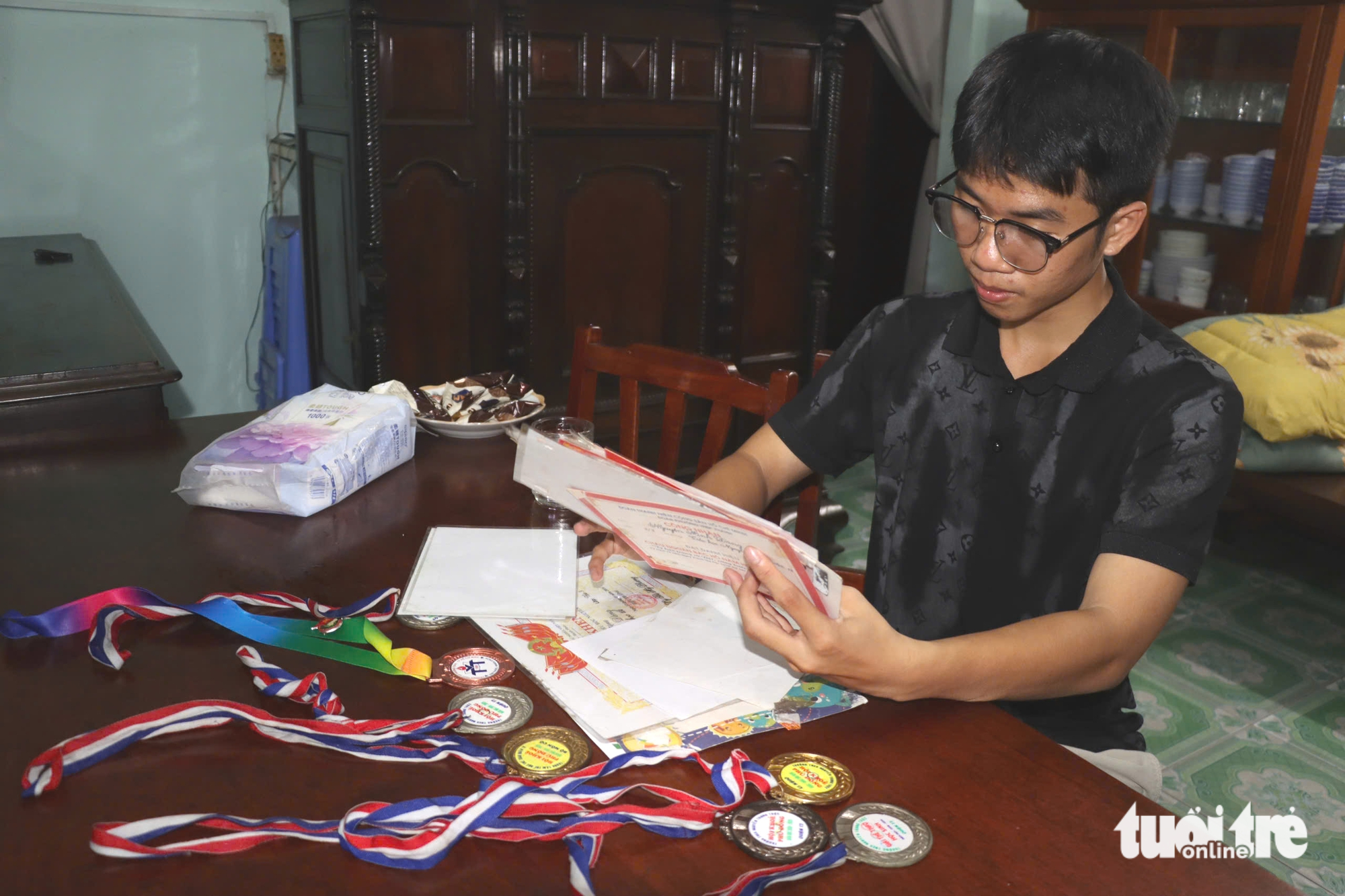 "Đăng không chỉ chăm chú nghe giảng, chủ động mượn thêm tài liệu từ các lớp khối xã hội mà còn nhịn ăn sáng để dành tiền mua tài liệu tự học. Và đúng như quyết tâm của em, cuối năm lớp 12 Đăng vẫn giữ vị trí nhất lớp, đạt học sinh xuất sắc cả năm", cô Thảo kể.